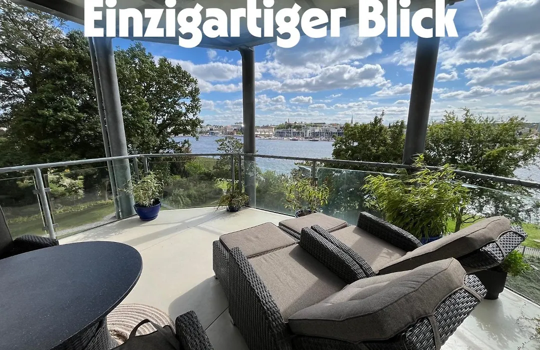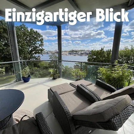 Beste Lage mit Warnowblick - großer Balkon, zwei Schlafzimmer, Aufzug, Stellplatz- WLAN