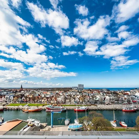 Located around a 10-minute drive from Die Trinkende, the 1-room Traumwohnung Mit Stadthafen-Panorama! Zwei Schlafzimmer, Parkplatz Rostock apartment is 1.9 miles from a top family-friendly place like the modern Humbold-Pinguine Zoo. Featuring a play area and a garden terrace, the apartment offers Wi-Fi for business or leisure needs.